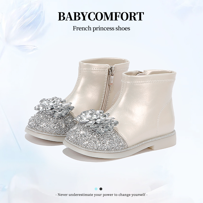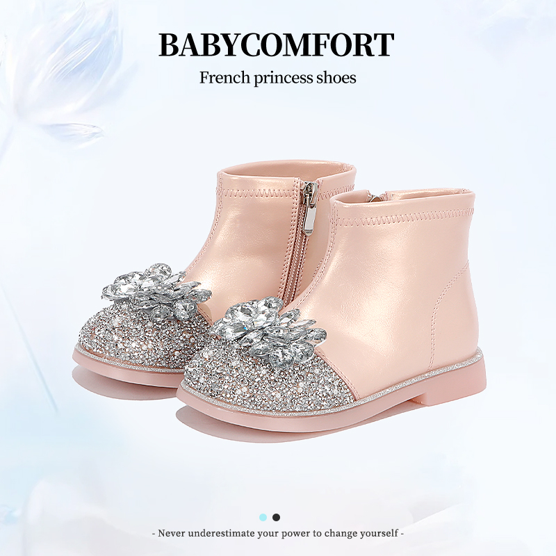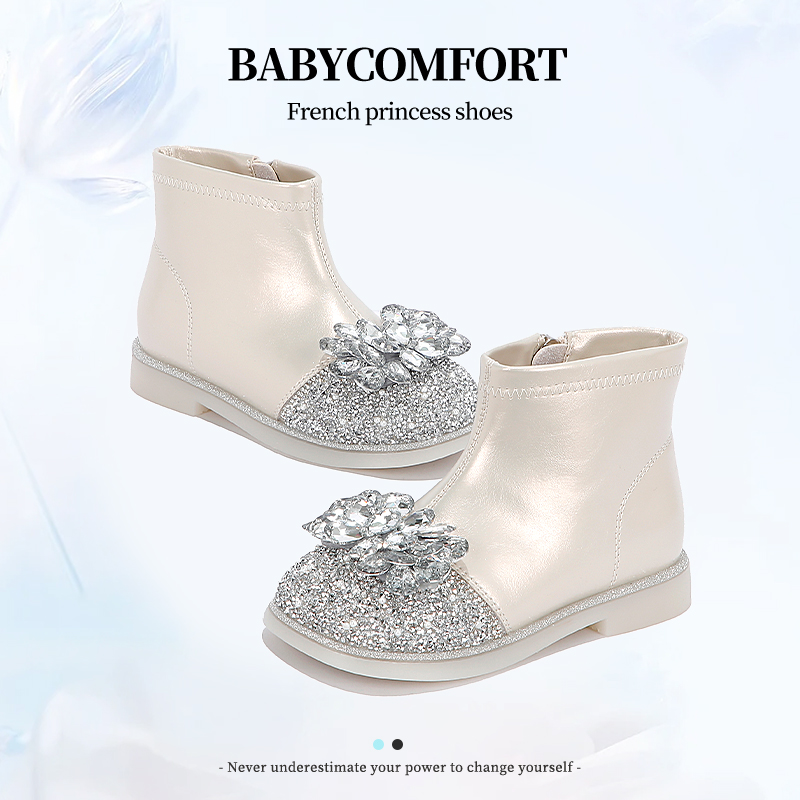小女孩加绒宝宝软底水晶二棉鞋 女童靴子儿童公主短靴2025新款 冬季