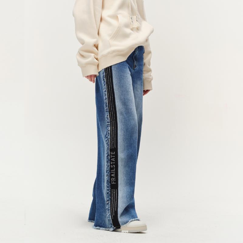 直筒堆堆裤 GUUKA&matsui联名小狗阔腿牛仔裤 子美式 复古水洗裤 男款