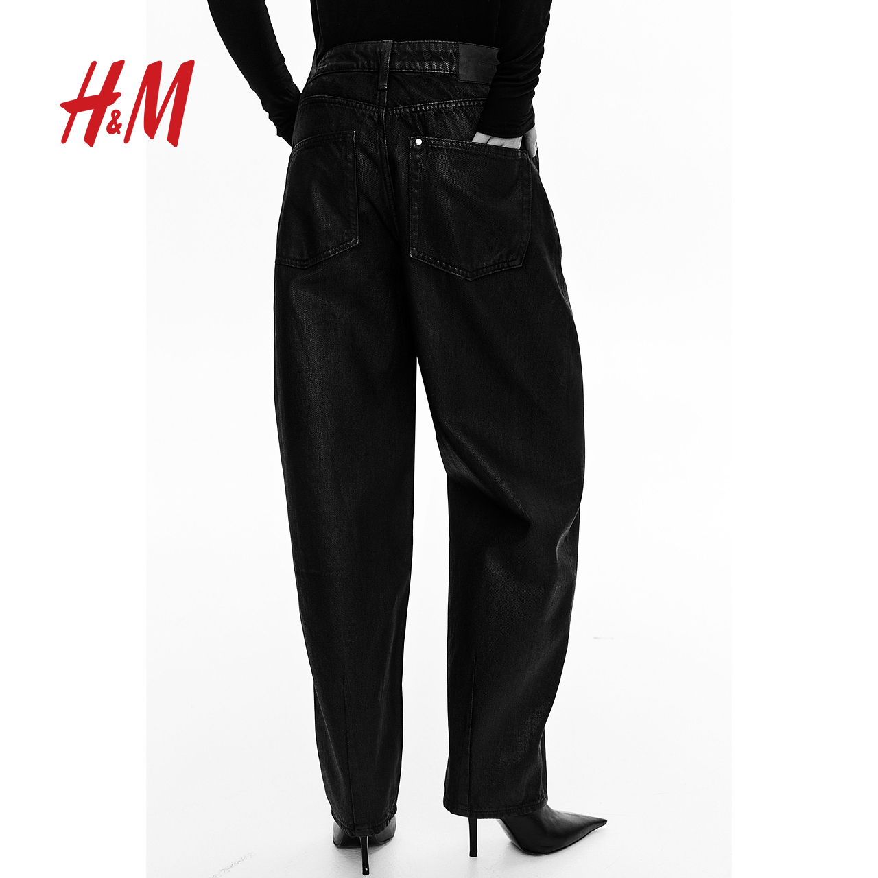 腿宽松筒形高腰牛仔裤 灯笼裤 1229032 秋季 HM女装