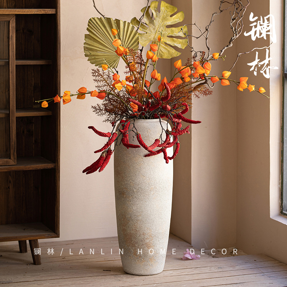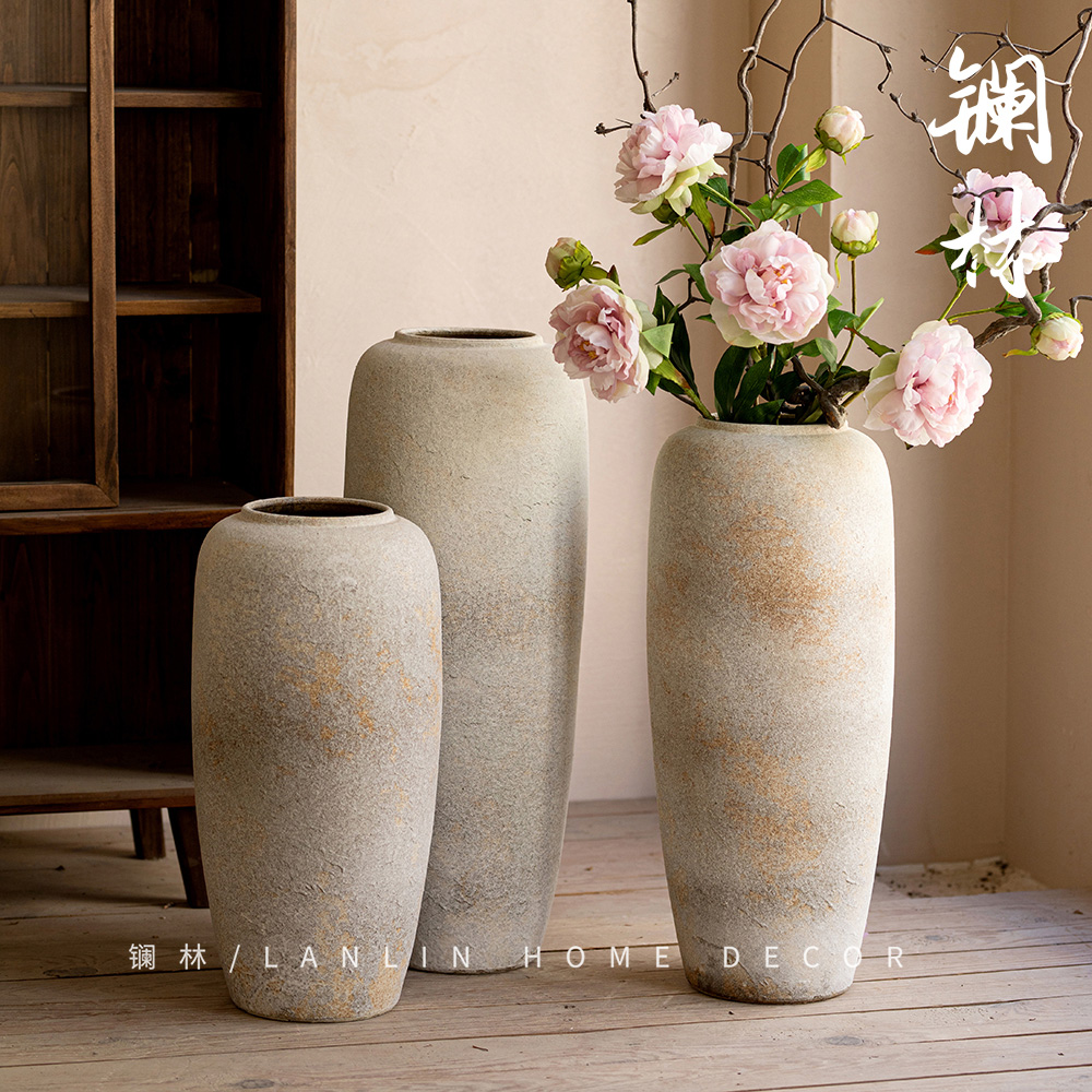 景德镇侘寂风落地粗陶花瓶高级感复古民宿玄关陶瓷插花陶罐言溪瓶