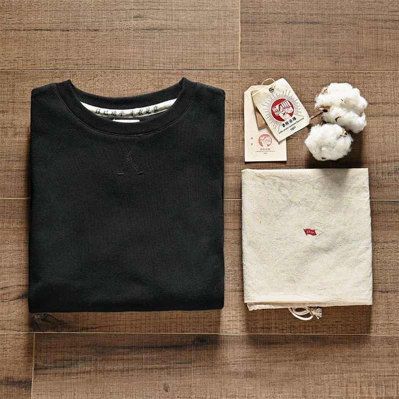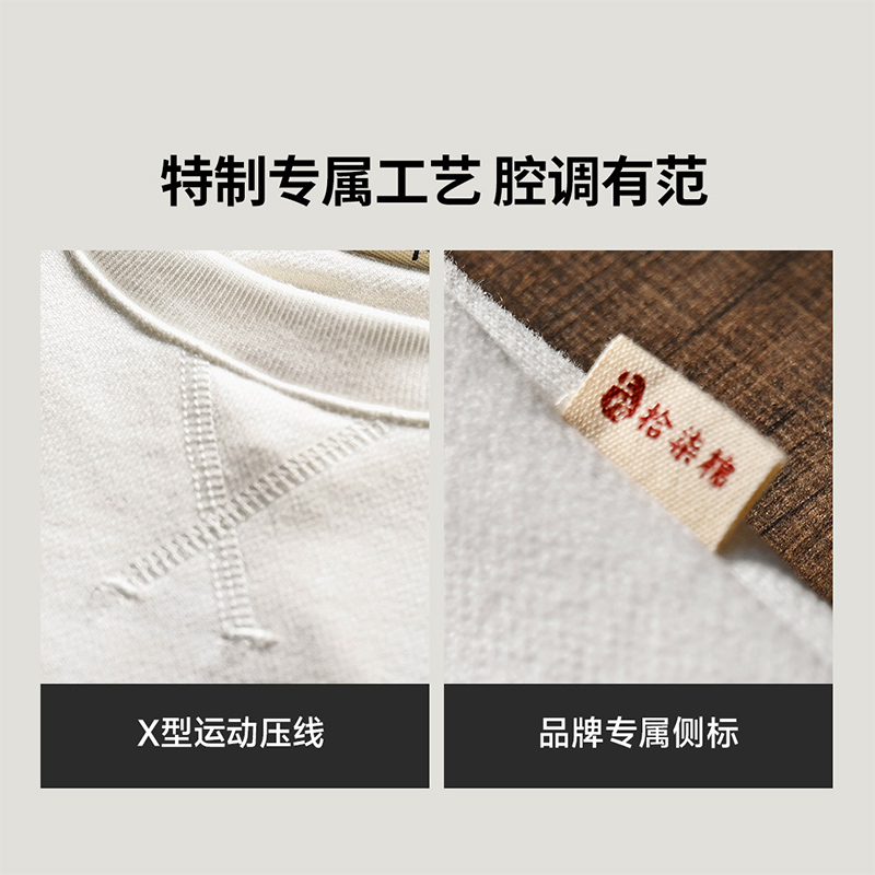 上纺拾柒棉圆领纯棉卫衣白黑复古百搭简约宽松春秋男女情侣套头衫