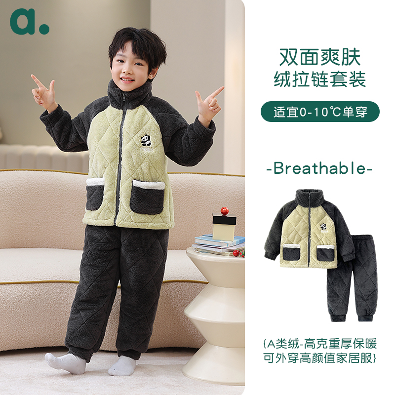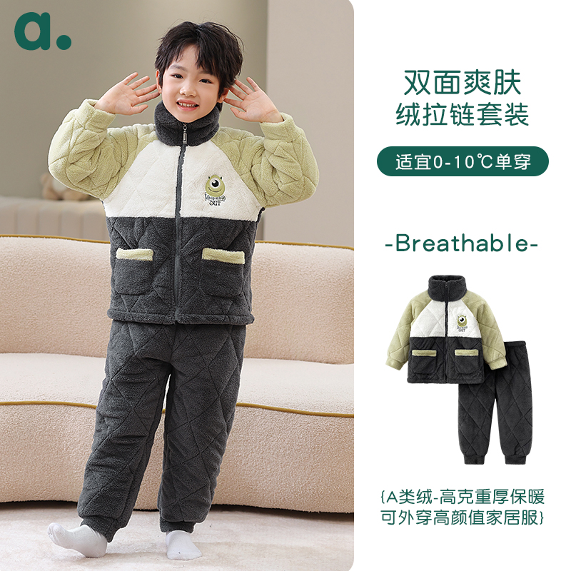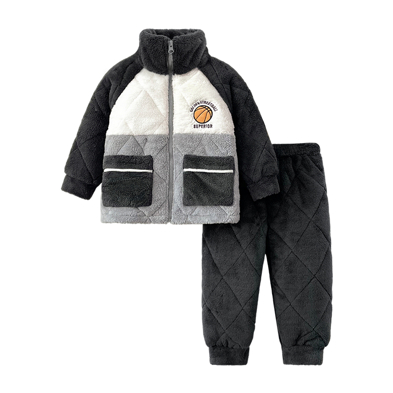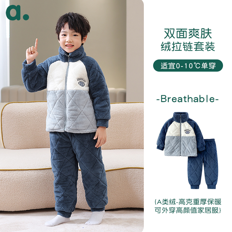 珊瑚绒三层夹棉加厚外穿男童家居服套装 冬季 御寒型 安之伴童装