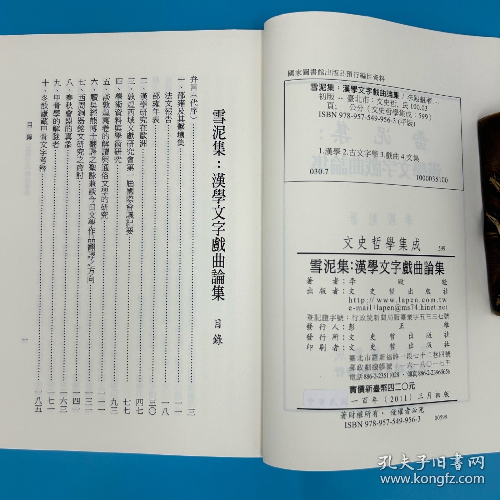雪泥集:漢學文字戲曲論集 正版 2011年3月版 李殿奎 现货 台湾文史哲版 港台原版