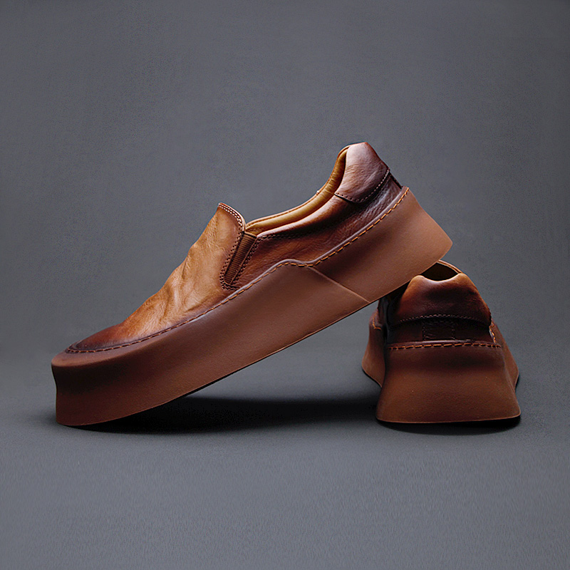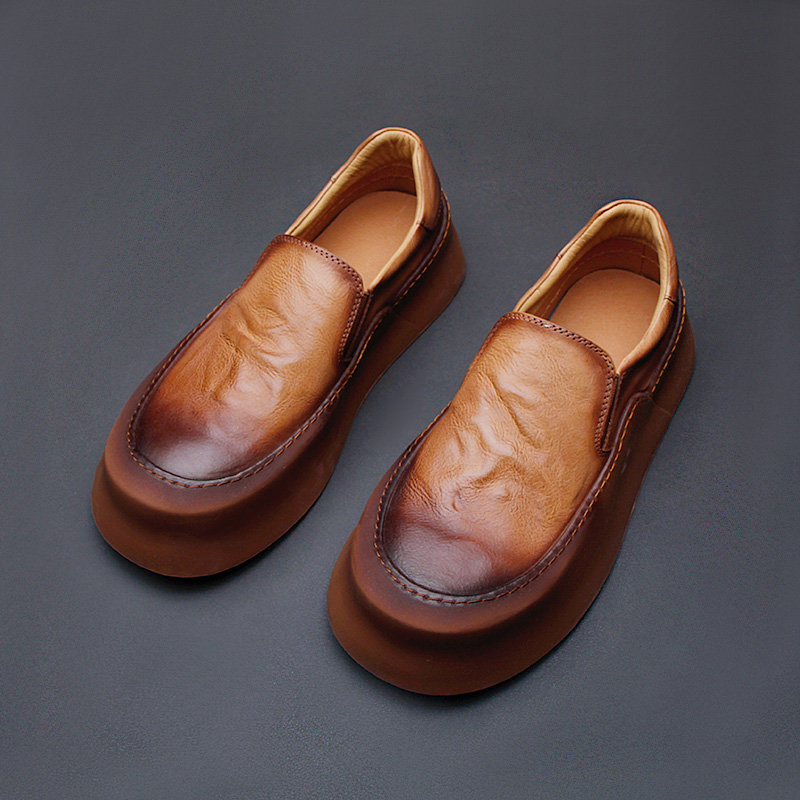 软底舒适休闲皮鞋 一脚蹬懒人乐福鞋 潮 男2025新款 日系复古牛皮板鞋