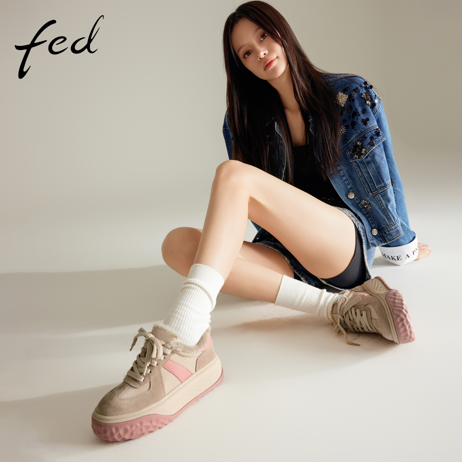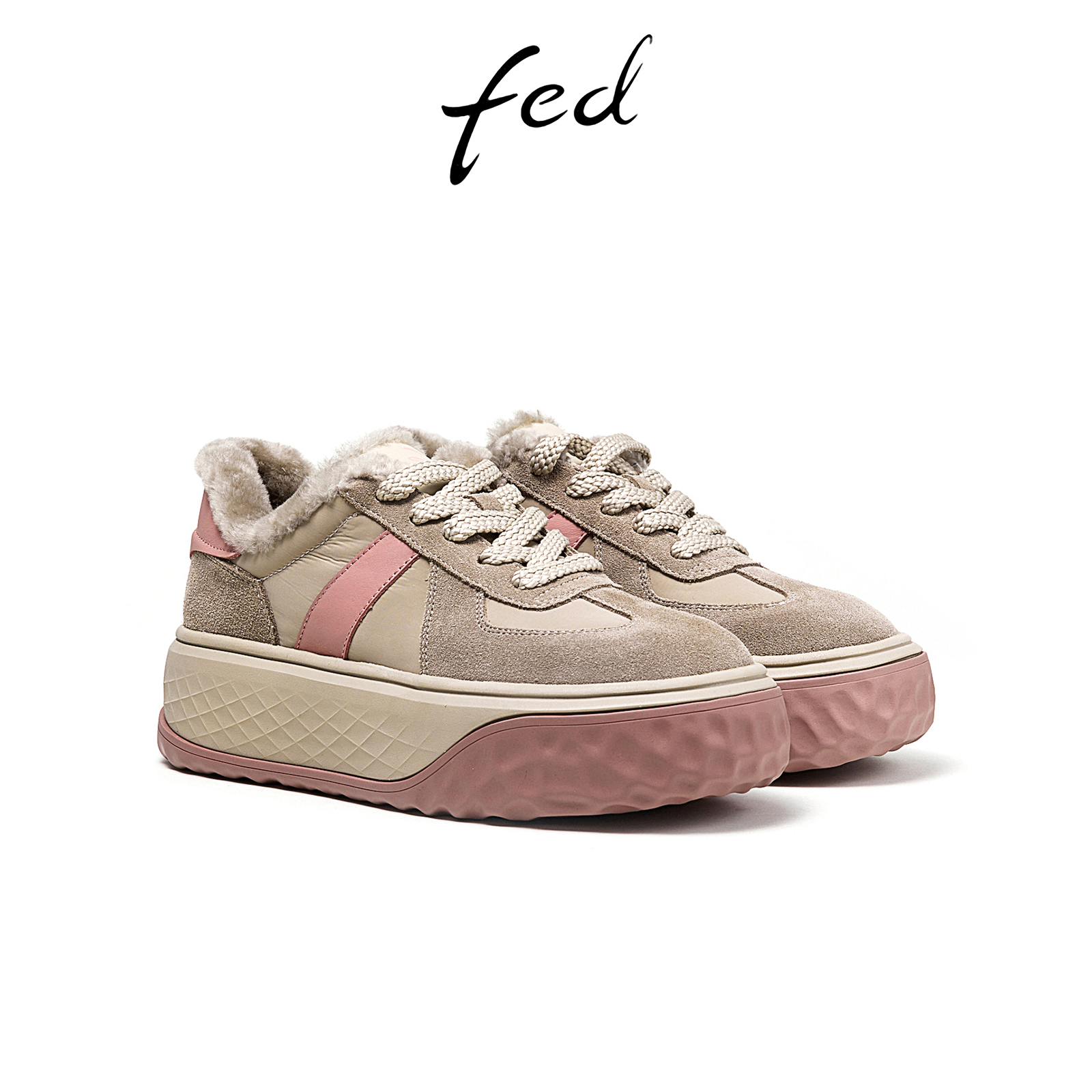 加绒休闲阿甘鞋 张凌赫 新款 百丽彩虹豆红色德训鞋 B1U1D预 董璇同款