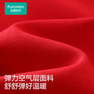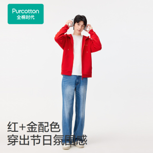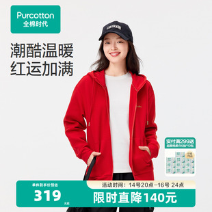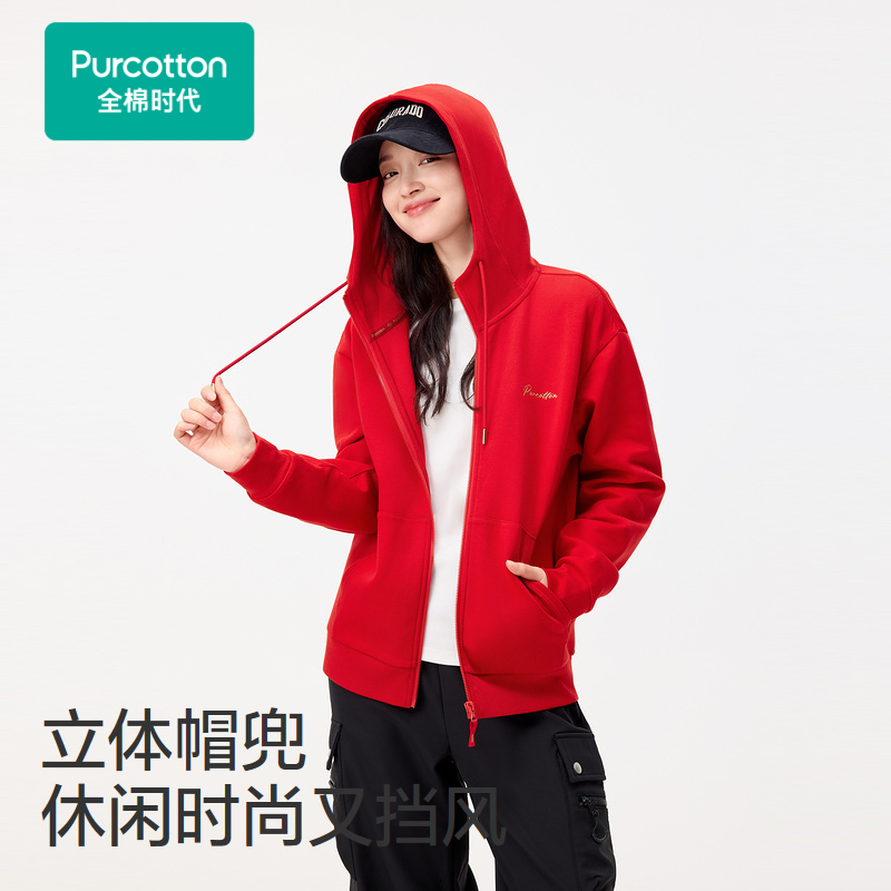 全棉时代女士卫衣连帽拉链开衫 女宽松本命年红色上衣2025秋冬新款