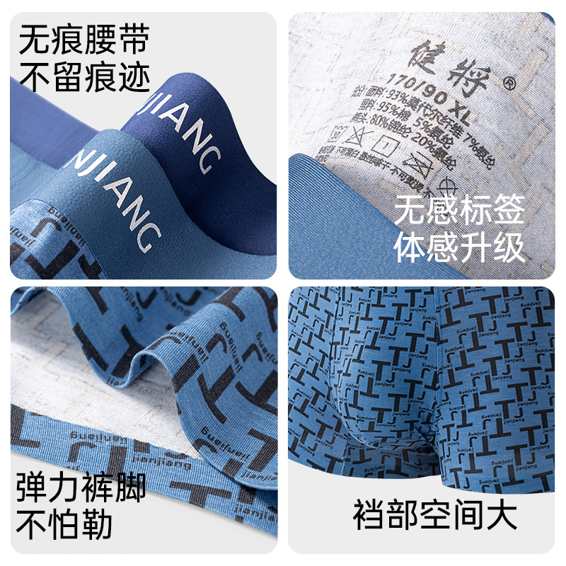 运动抗菌透气男式 莫代尔四角裤 平角大码 裤 印花 健将男士 头新款 内裤