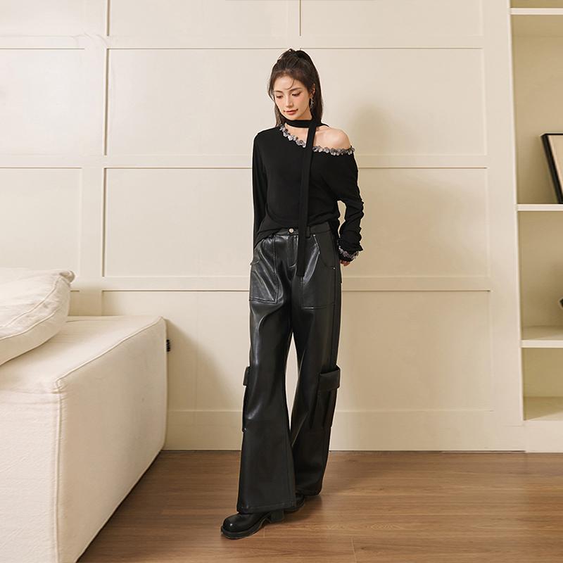 银泰百货精品 Three 长裤 秋冬复古蛋白皮工装 301355 Quarters