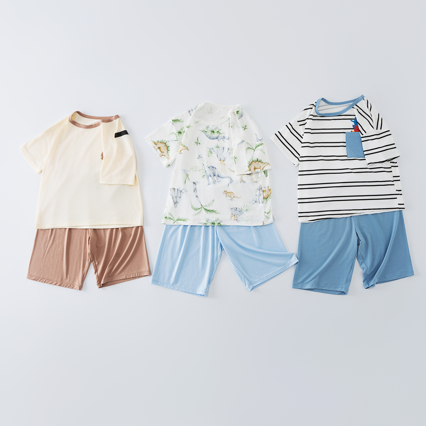 睡衣宝宝儿童空调服 凉感短袖 天然竹纤维A类男童家居服套装 夏薄款