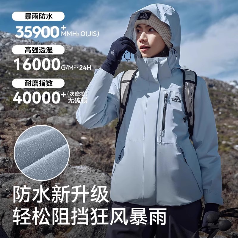 伯希和户外冲锋衣男女春秋季 2.0 三合一防风雨加绒登山服 经典