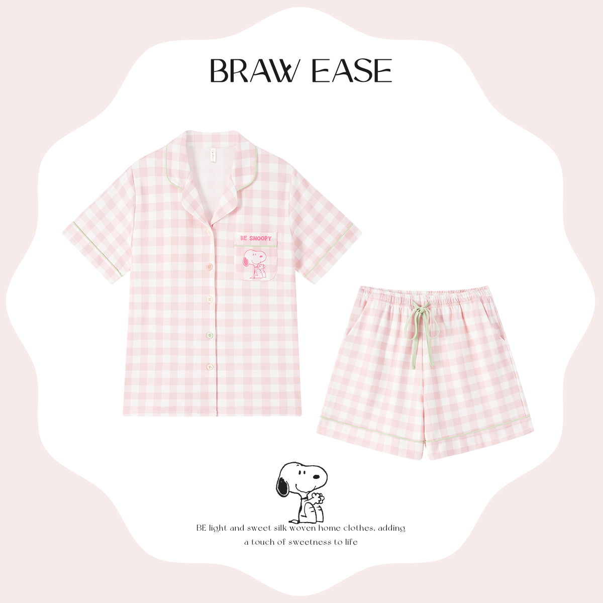 短袖 纯棉2025春夏新款 家居服女士带胸垫 女款 休闲风凉感棉睡衣套装