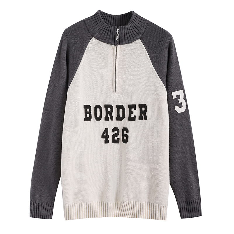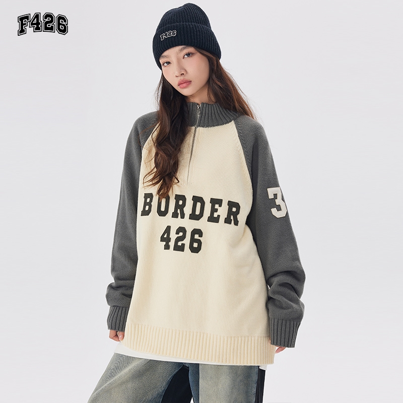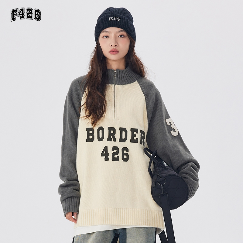 宽松休闲毛衣 国潮牌情侣嘻哈街头毛呢贴布绣插肩袖 F426奥莱店