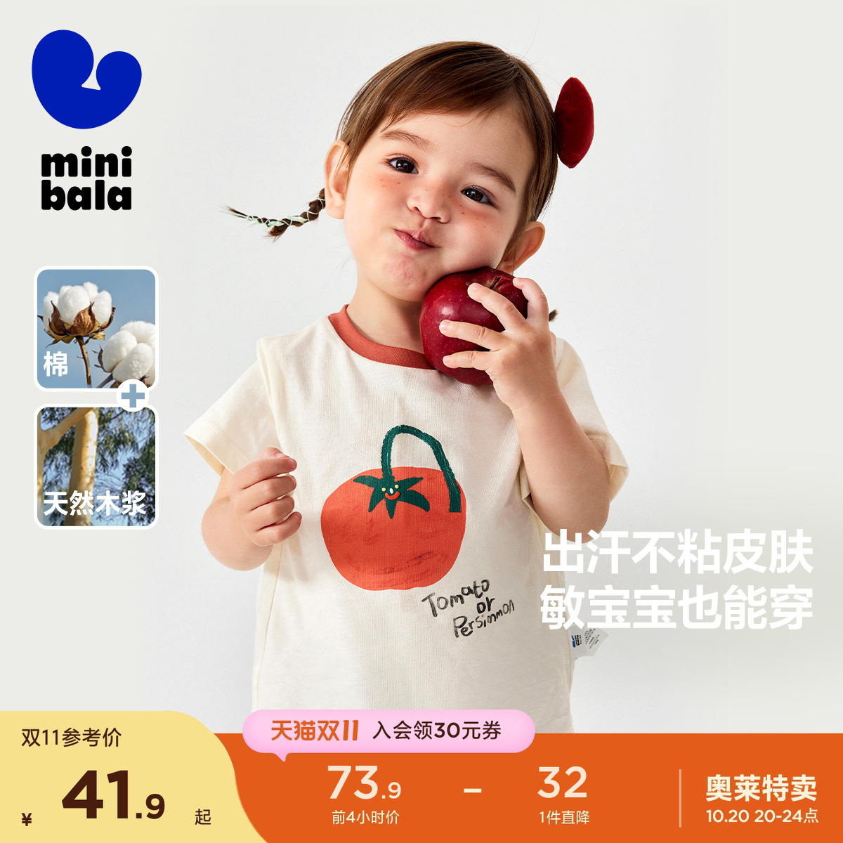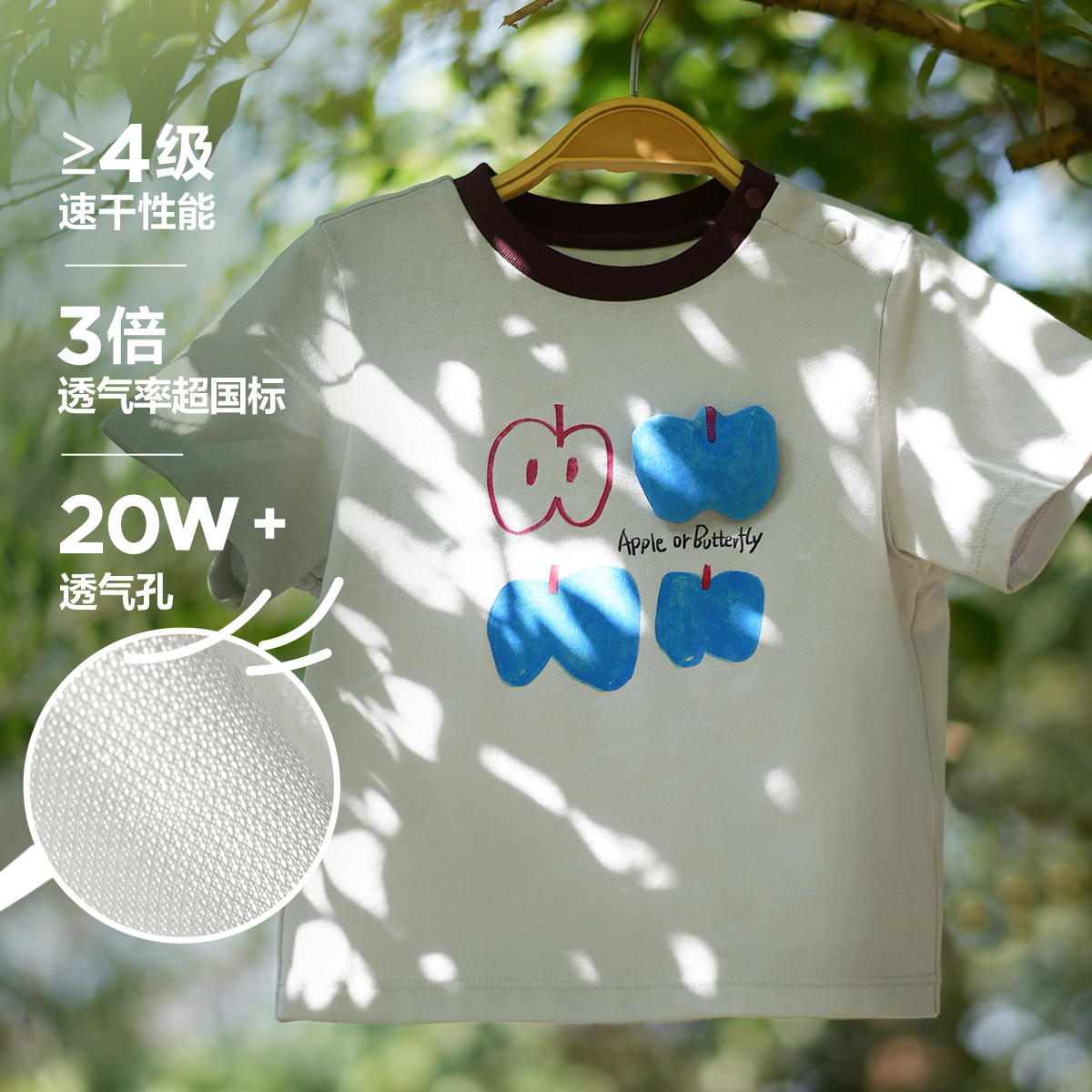 上衣 迷你巴拉巴拉男女童T恤夏凉感抑菌不闷汗宝宝短袖 呼吸T