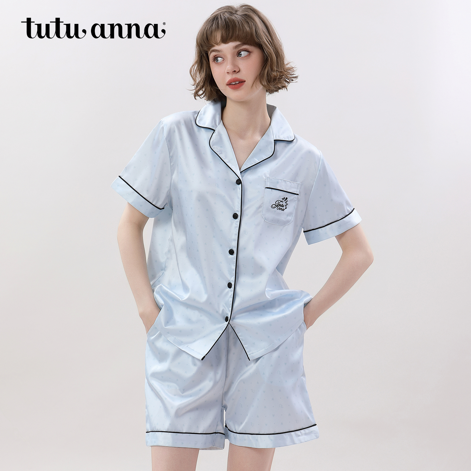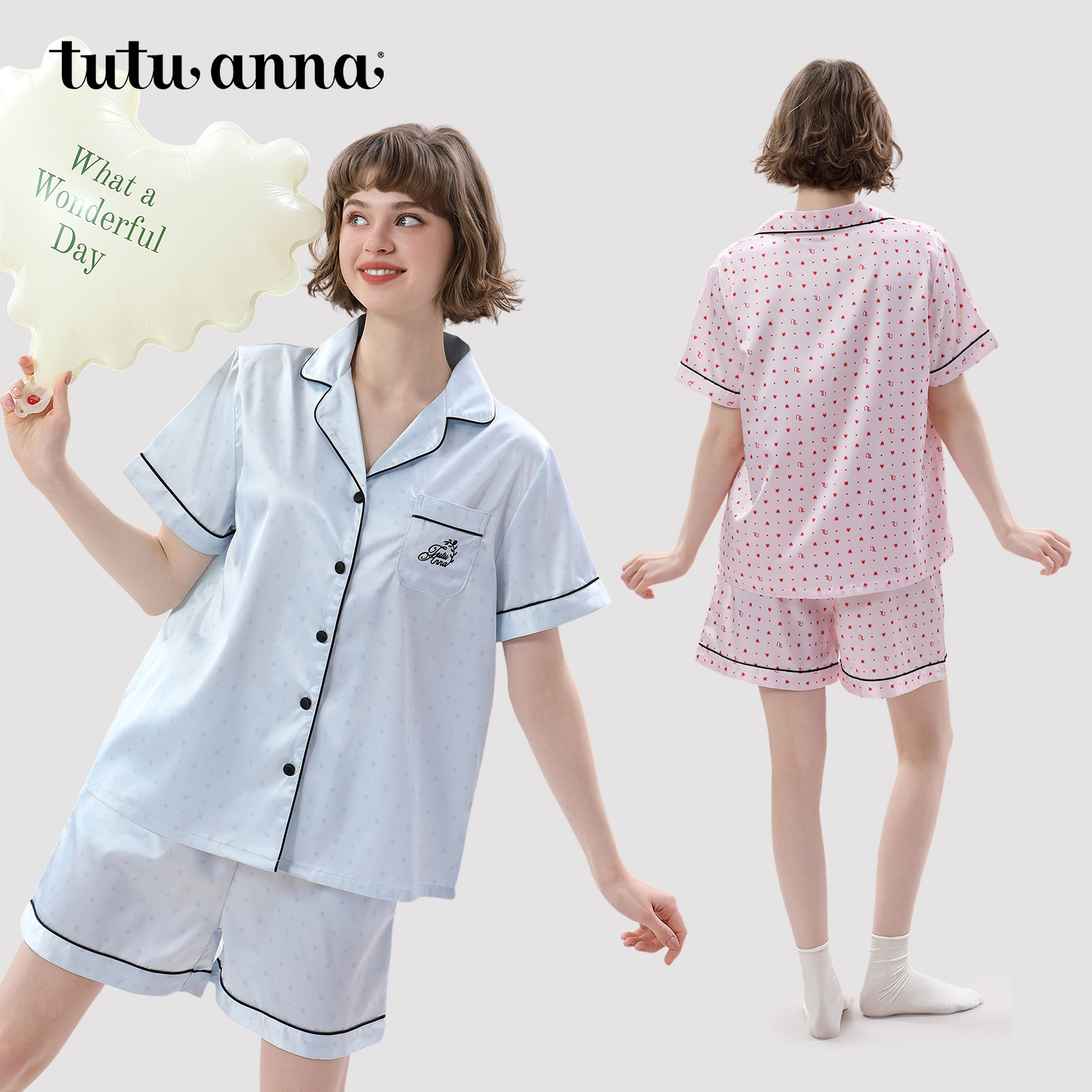 家居服套装 冰丝凉感丝绸缎面短袖 2025新款 tutuanna睡衣女士夏季