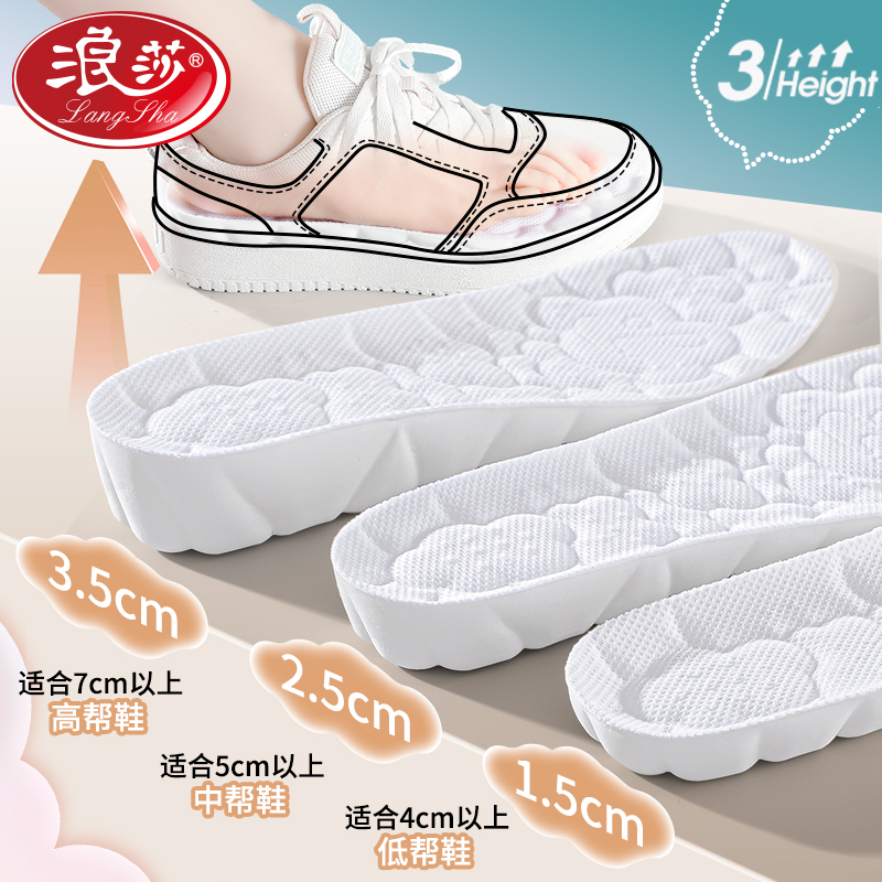 浪莎内增高鞋 垫女不累脚隐形足弓支撑软底舒适增高垫男小个子神器