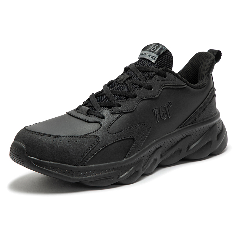 轻便回弹全黑跑鞋 361度男鞋 皮面防水舒适跑步鞋 2025新款 男 运动鞋
