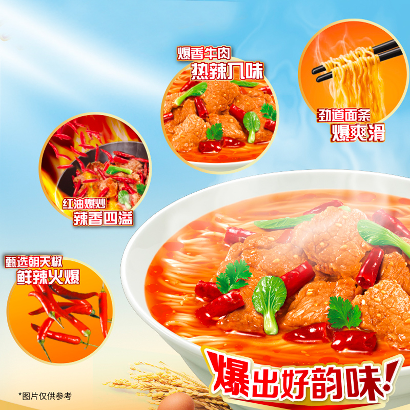 康师傅红油爆椒牛肉面桶装 整箱方便面速食泡面学生宿舍早餐夜宵