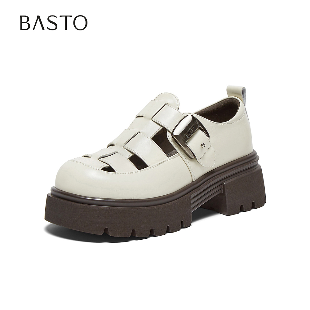 镂空女罗马凉鞋 复古厚底猪笼鞋 CJ502BK5 商场新款 百思图2025夏季