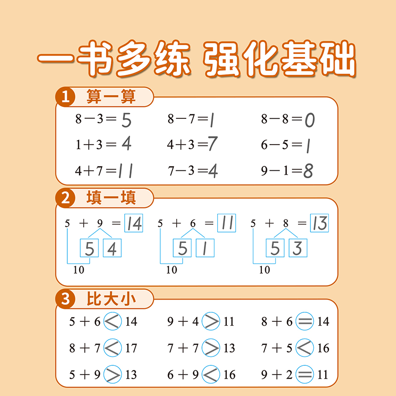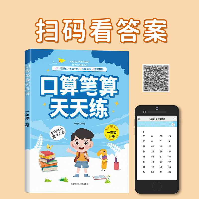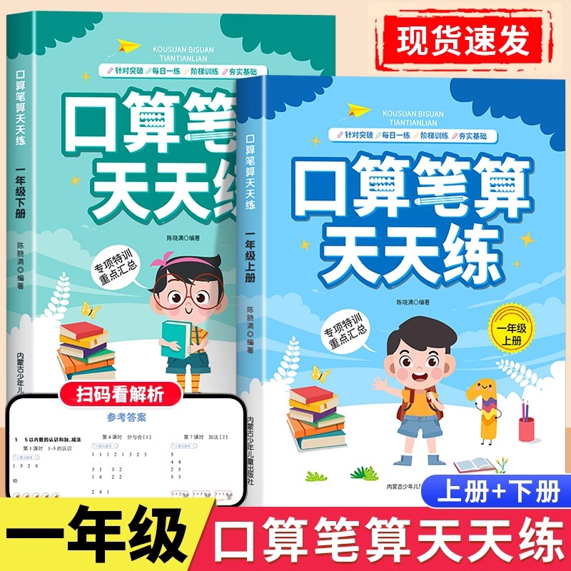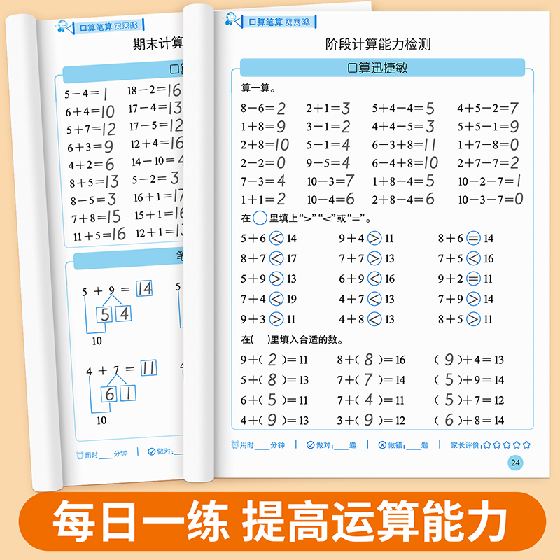 竖式 口算题卡每日一练100道横式 计算题强化训练小学1年级数学专项训练同步练习册100以内加减法 人教版 一年级上下册数学口算天天练