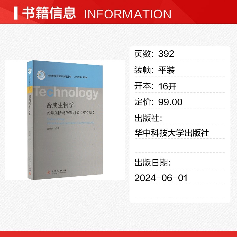 雷瑞鹏 编 华中科技大学出版 伦理风险与治理对策 社 图书籍 英文版 新华书店正版 合成生物学 伦理学社科