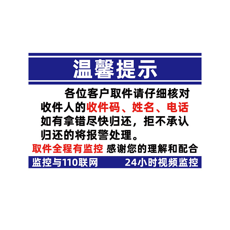 菜鸟驿站自助取件不排队提示牌快递取件码 标识牌贴纸及时取件指示牌驿站取件警示牌内有监控警示牌墙贴定制