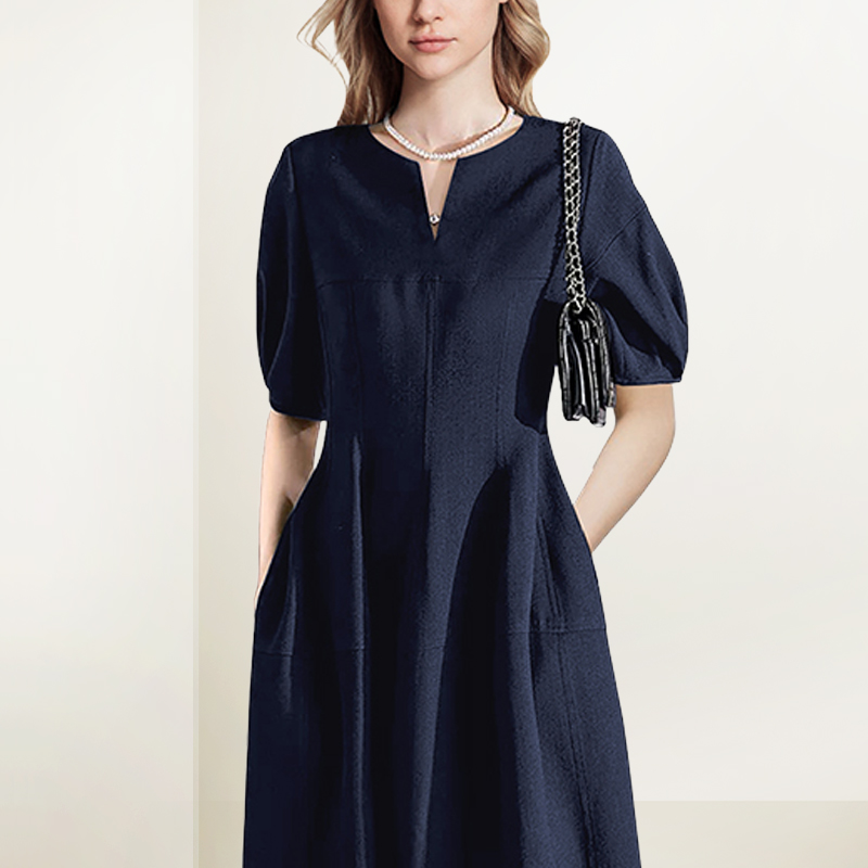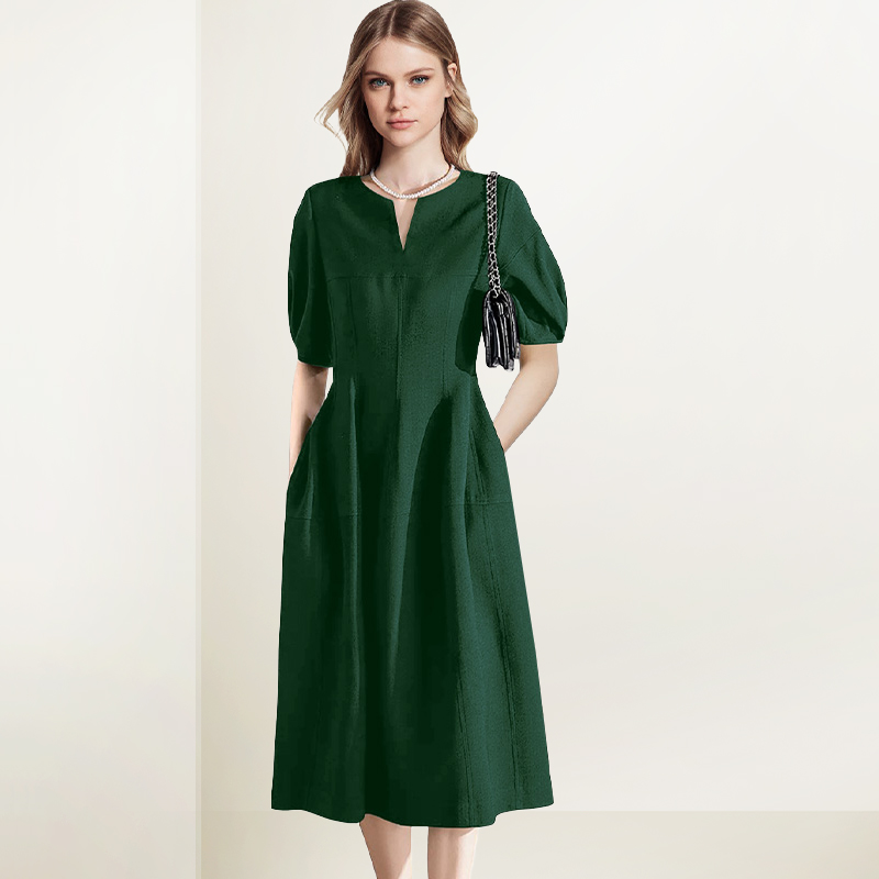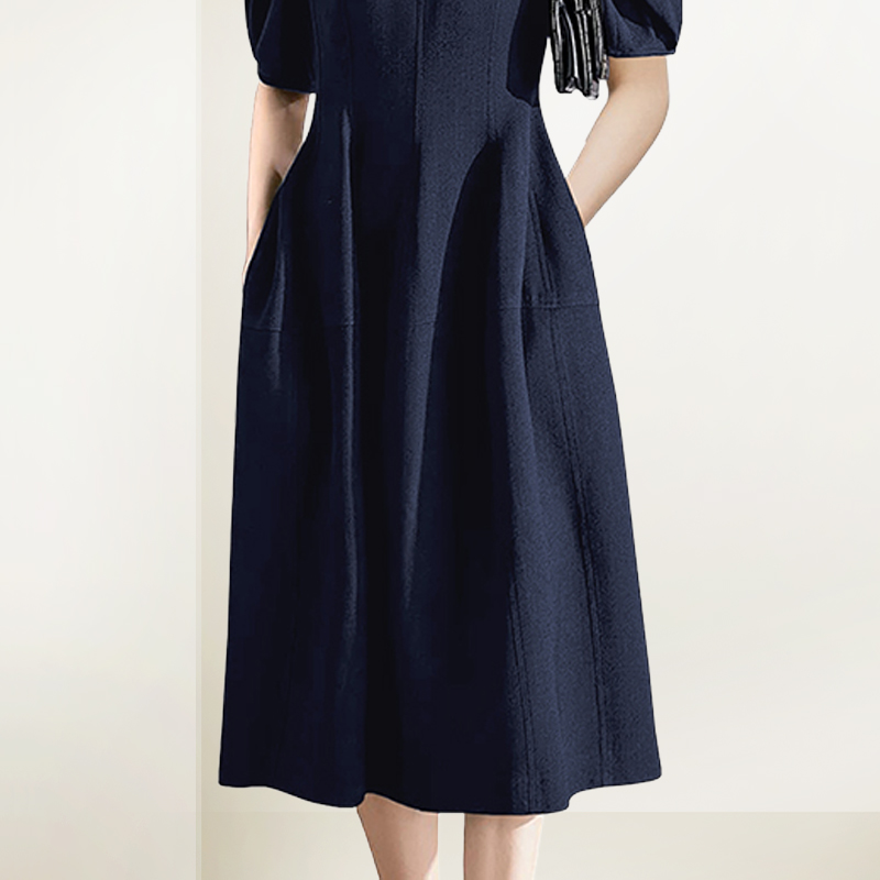 百搭淑女风收腰拼接A字裙中长裙 新款 Vero Moda连衣裙女2025秋季
