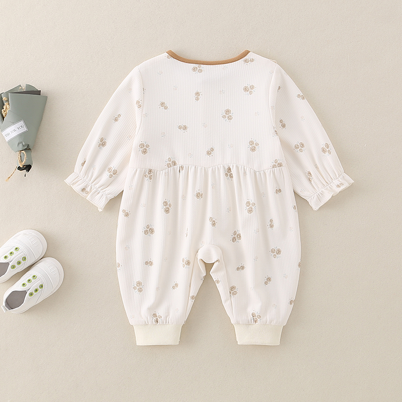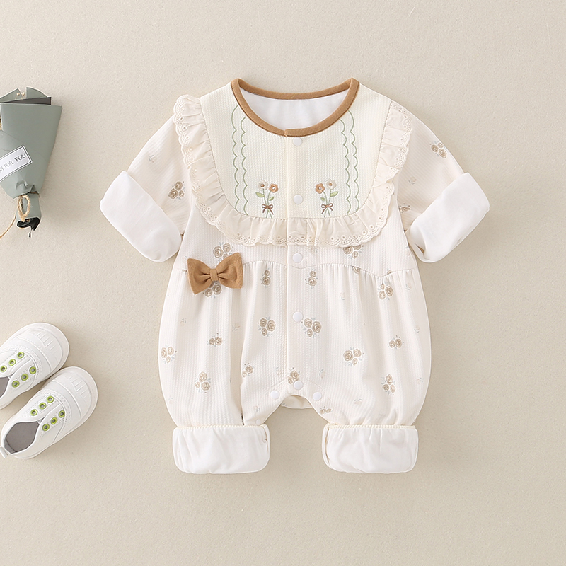 kmi婴儿衣服春装 婴幼儿连体衣宝宝外出服哈衣春秋公主碎花爬服