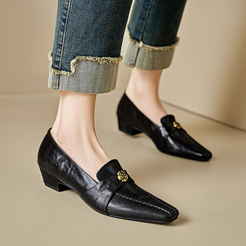 浅口鞋 套脚女鞋 女秋季 简约风低跟方跟单鞋 0206 新款 大东时尚