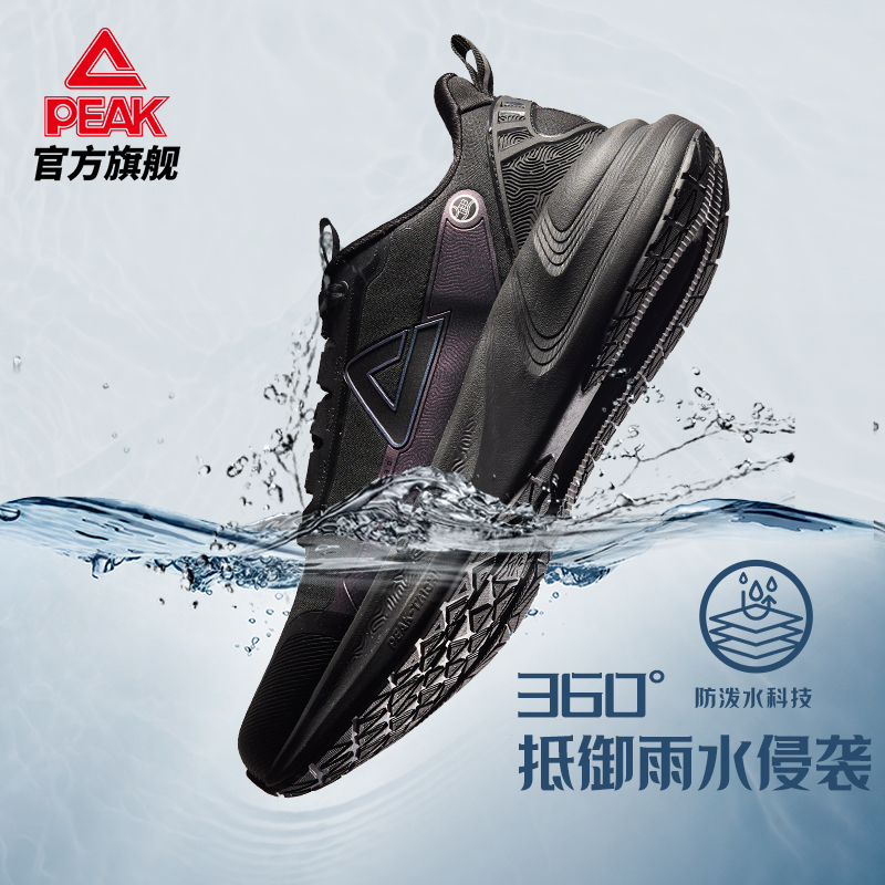 黑色秋冬加绒皮面运动鞋 特步男鞋 子男正品 防水跑步休闲鞋 2025新款
