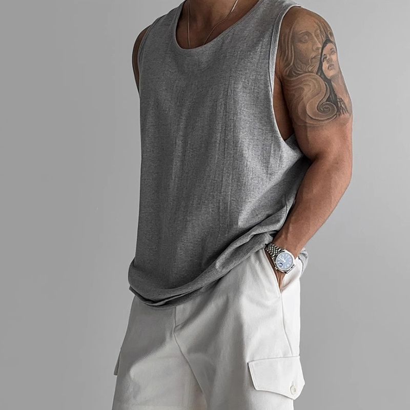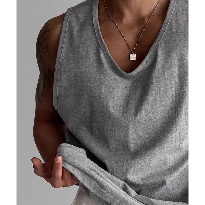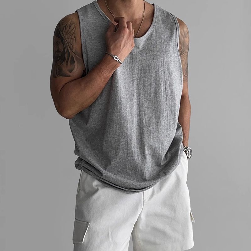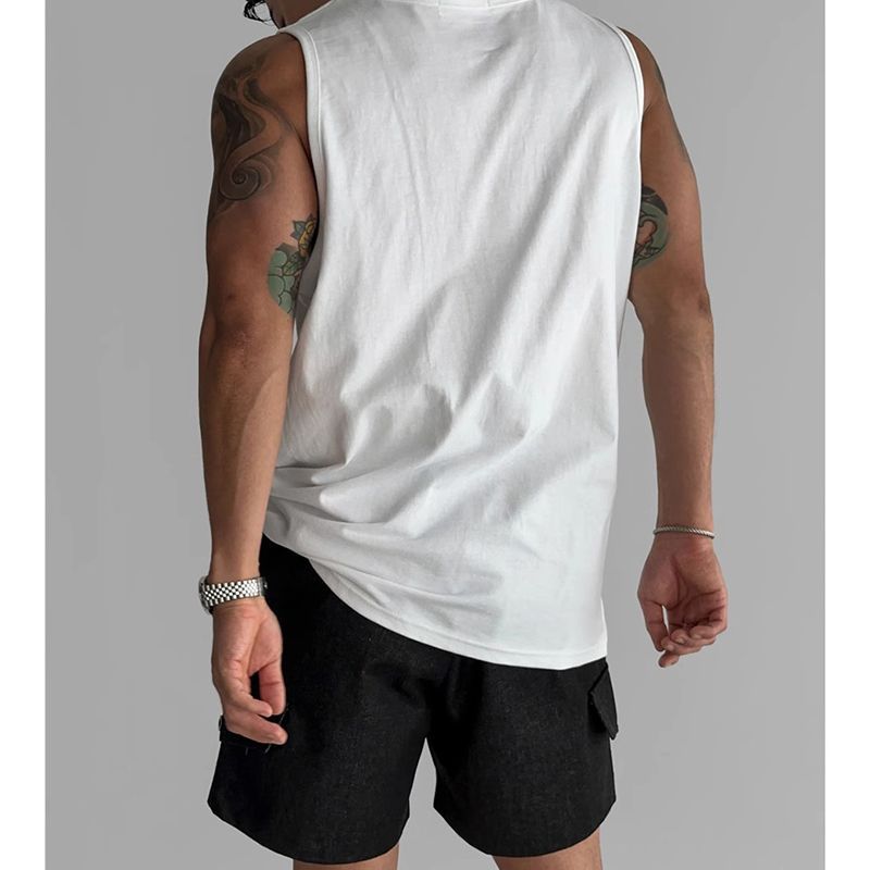 纯棉2025新款 男款 运动健身吸汗夏季 打底汗衫 无袖 猫人宽肩背心男士