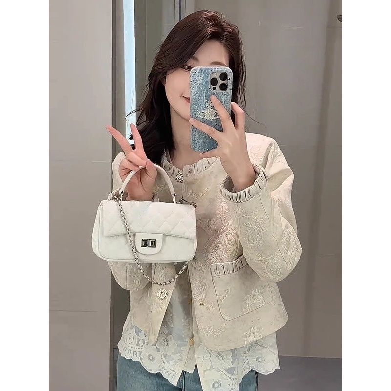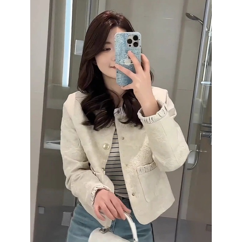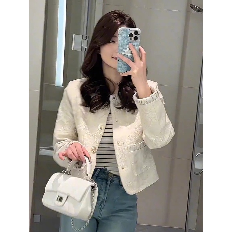 重工设计感短款 时尚 外套气质刺绣提花轻奢圆领显瘦外套女 新款 春季