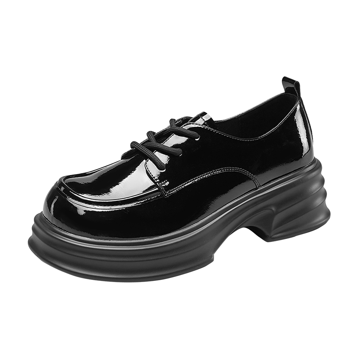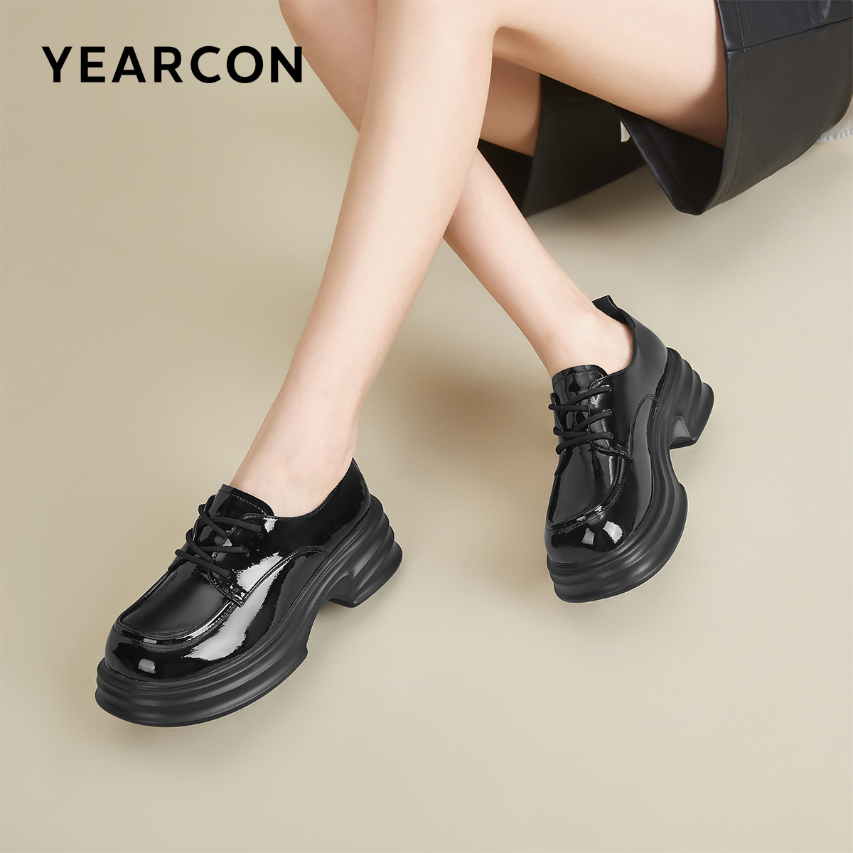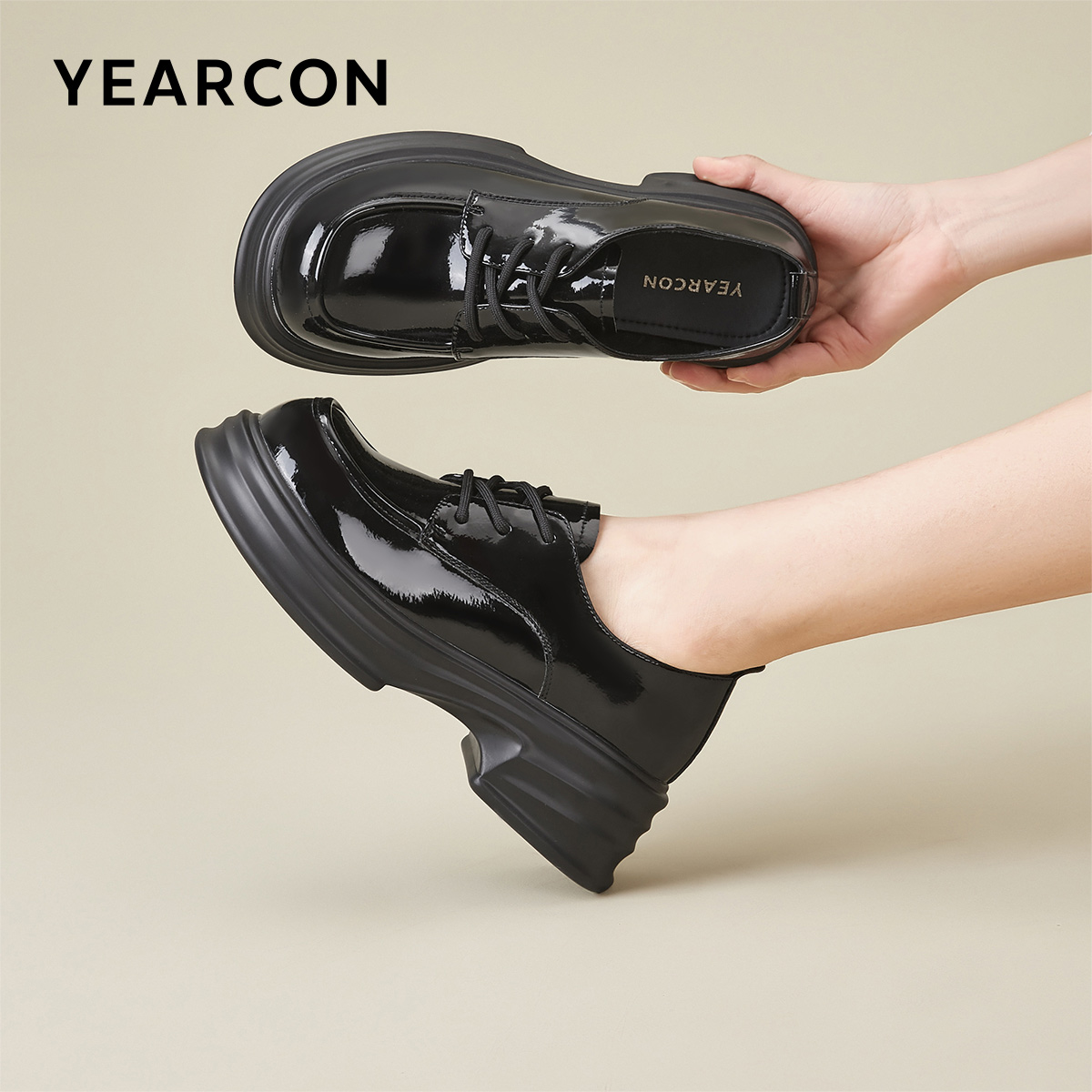 漆皮高跟鞋 意尔康女鞋 厚底单鞋 女士粗跟英伦学院风小皮鞋 春秋季