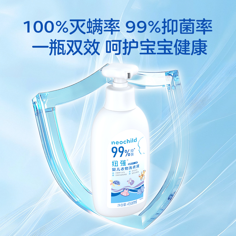 450ml补充装 纽强婴幼儿衣物洗衣液多效抑菌不伤手宝宝专用 450ml