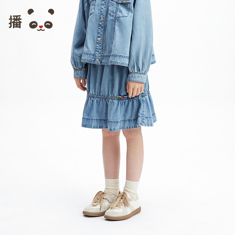 播 舒适柔软松紧腰彩虹撞色牛仔半身裙KGS1BD0403 broadcute童装