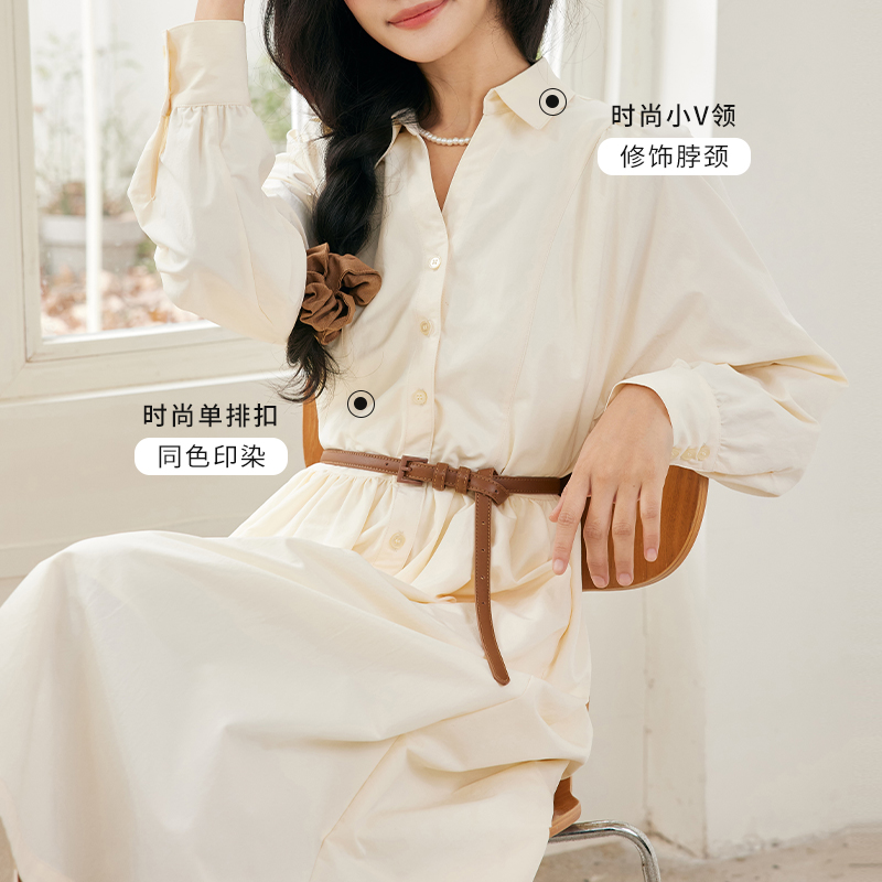 COCOBELLA轻奢仿醋酸飘带连衣裙秋冬缎面中长款 裙FR3240 衬衫