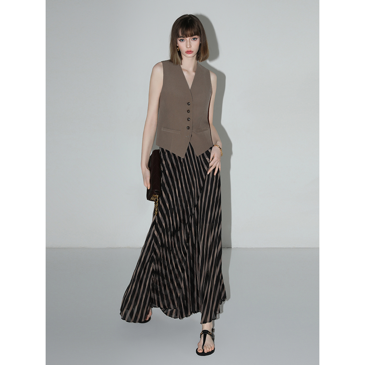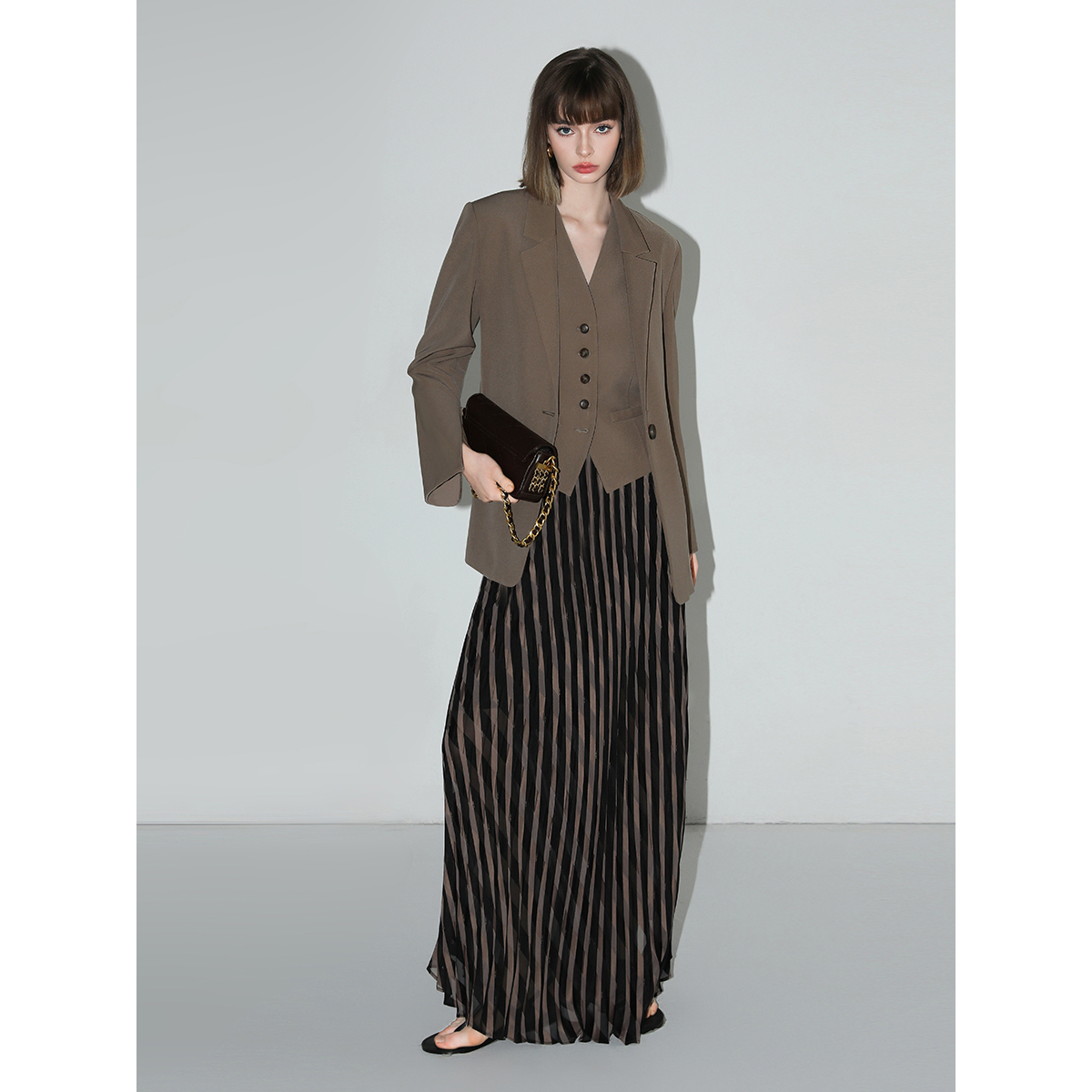 大摆伞裙高级秋冬新品 OCHIRLY欧时力 立体褶裥a字半身裙中长款