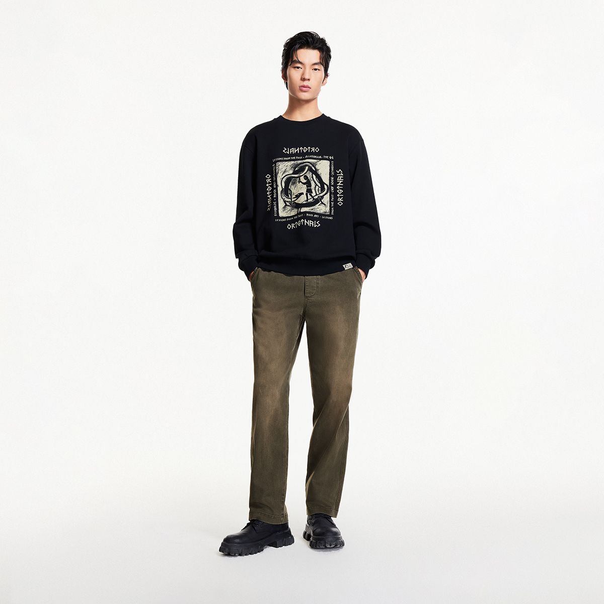 子松紧抽绳双侧插袋字母刺绣宽松长裤 杰克琼斯男装 休闲裤 款 夏季