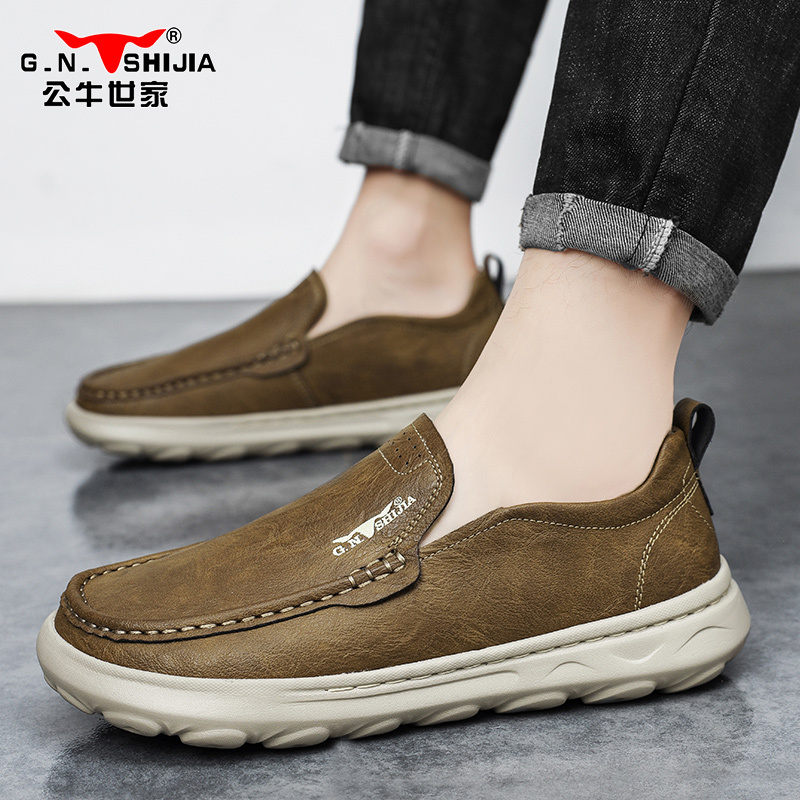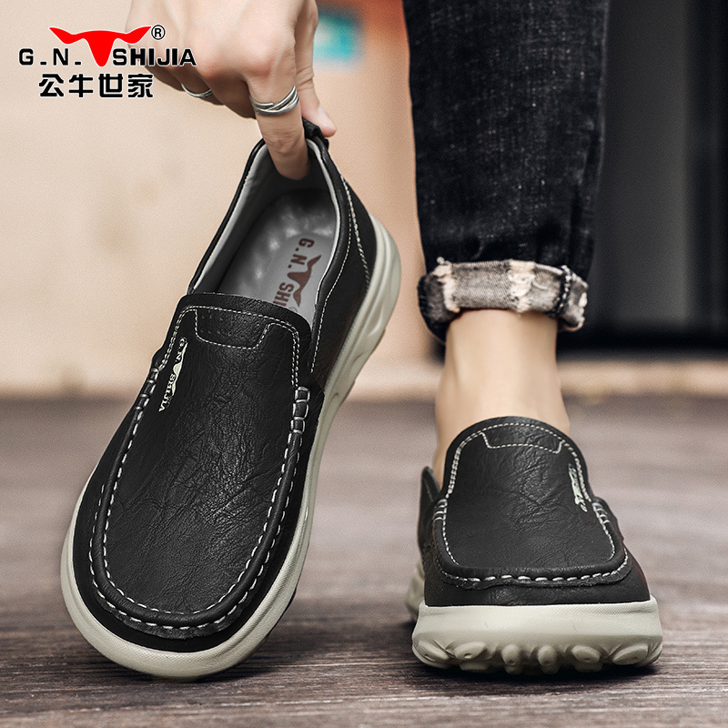 休闲皮鞋 新款 男士 软底一脚蹬真皮鞋 红蜻蜓男鞋 子男中年爸爸鞋 秋季