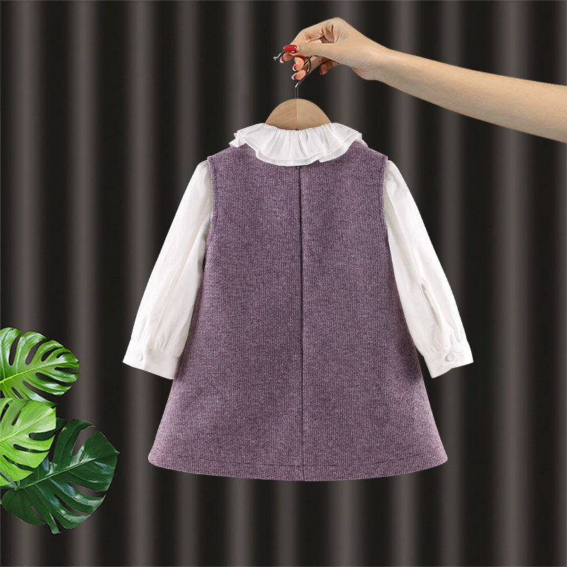 灯芯绒背带裙子 假两件连衣裙秋冬季 微胖女孩大码 赫本风Polo领长袖