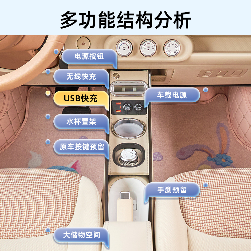 中央储物箱 ev扶手箱迷你三代马卡龙专用改装 2024款 五菱宏光mini