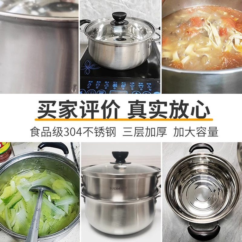 国风汤锅304不锈钢家用加厚奶锅煮粥锅小煮锅电磁炉炖锅燃气 包邮
