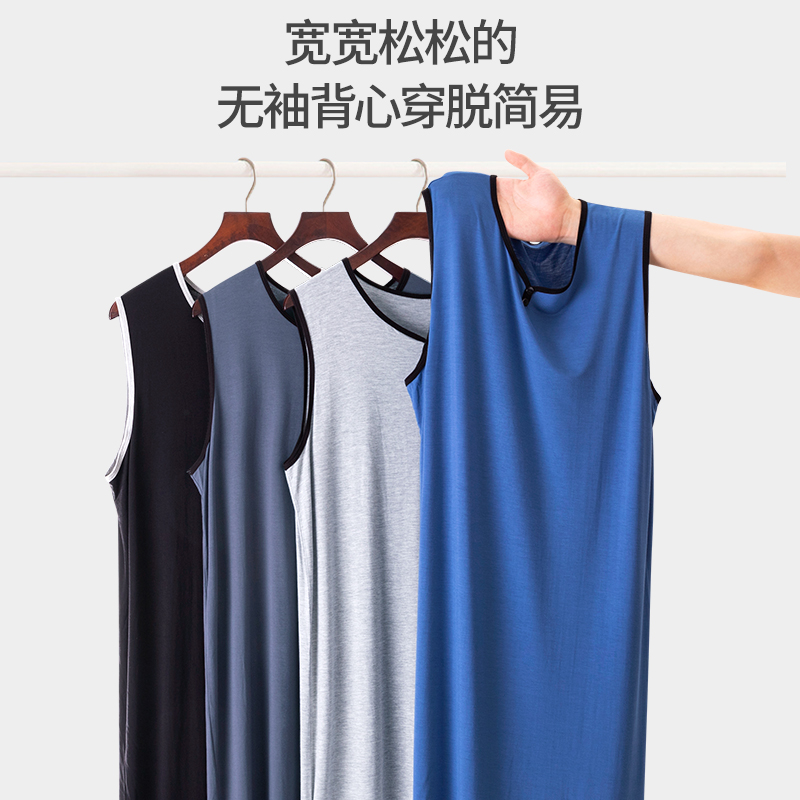包皮手术后专用成人睡袍夏季 方便解手青年浴袍 透气连体睡衣中长款