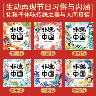 节日绘本全6册5 魅力中华系列中国山河游全景视觉大发现全4册非遗中国给孩子 8岁儿童人文地理科普视觉挑战游戏绘本 点读版