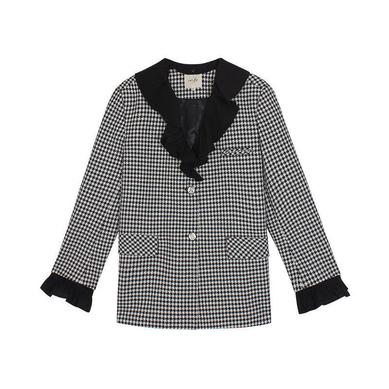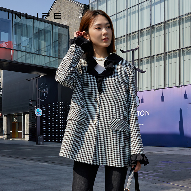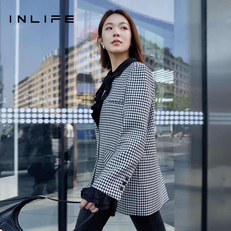 COCOBELLA高智感拼接人丝无领西装 女早秋通勤休闲气质外套SI533B