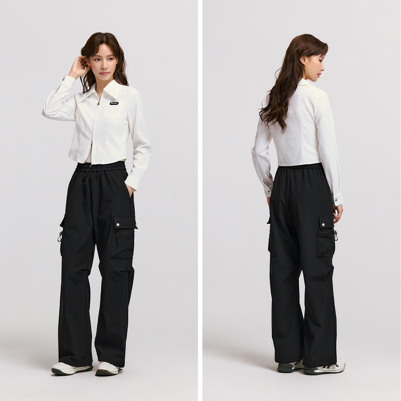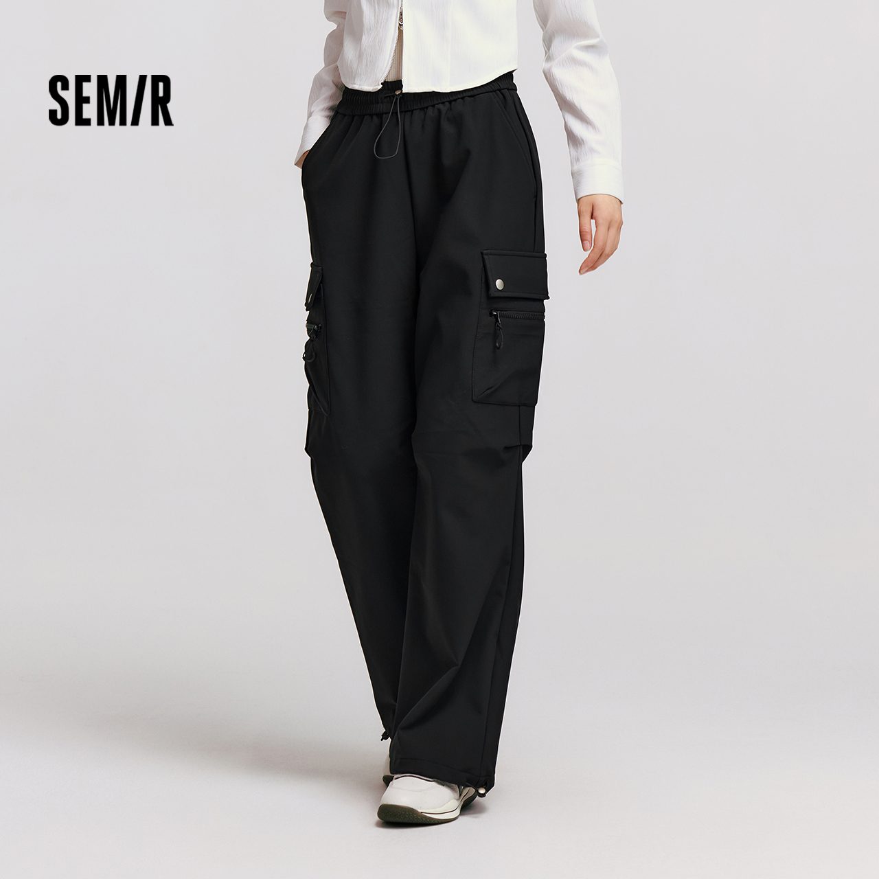 裤 遮肉女生冬出街松紧腰工装 潮酷显瘦 女抽绳加绒阔腿裤 森马休闲裤