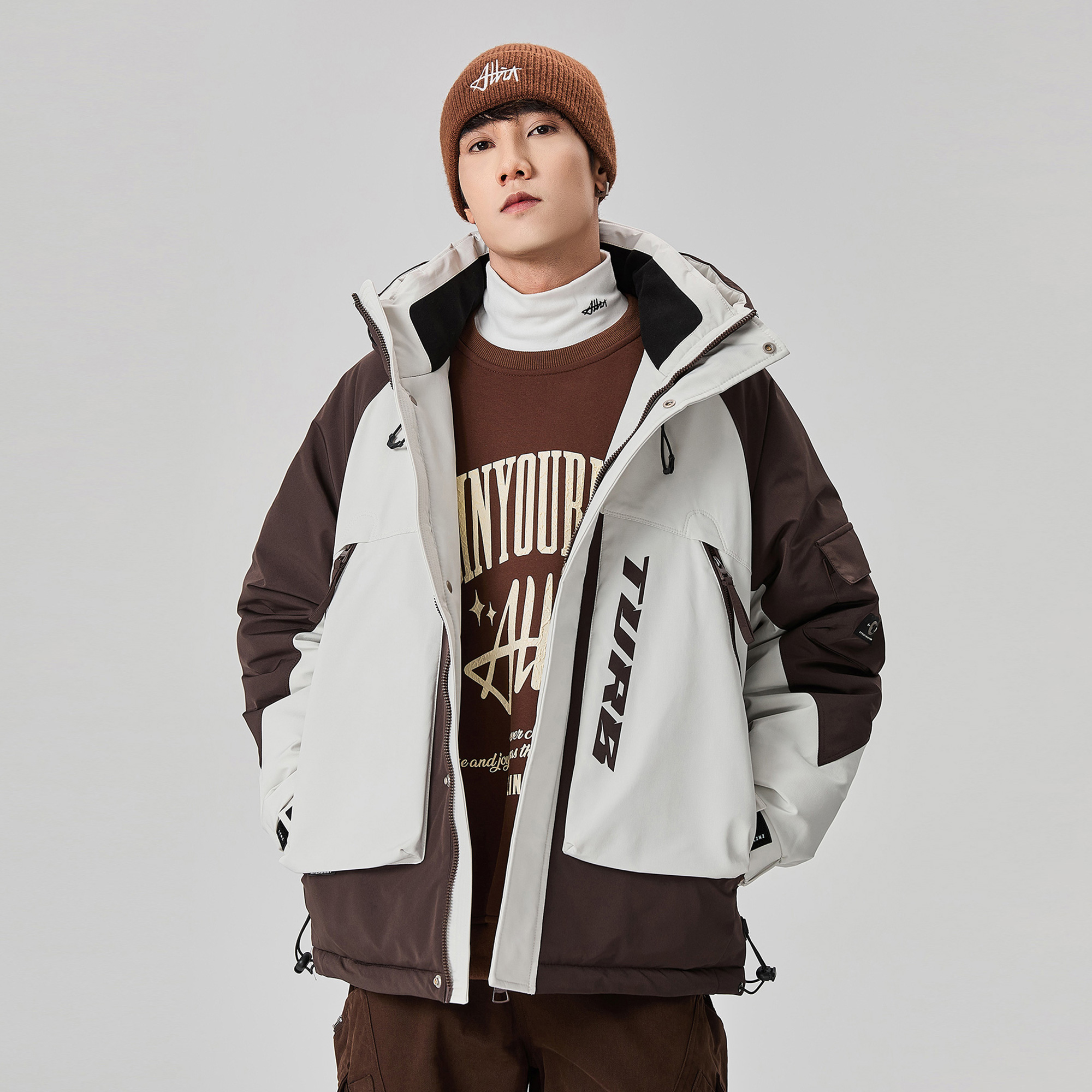 休闲加厚保暖短款 连帽羽绒服男冬季 鸭绒防寒服情侣外套 工装 ALLIN