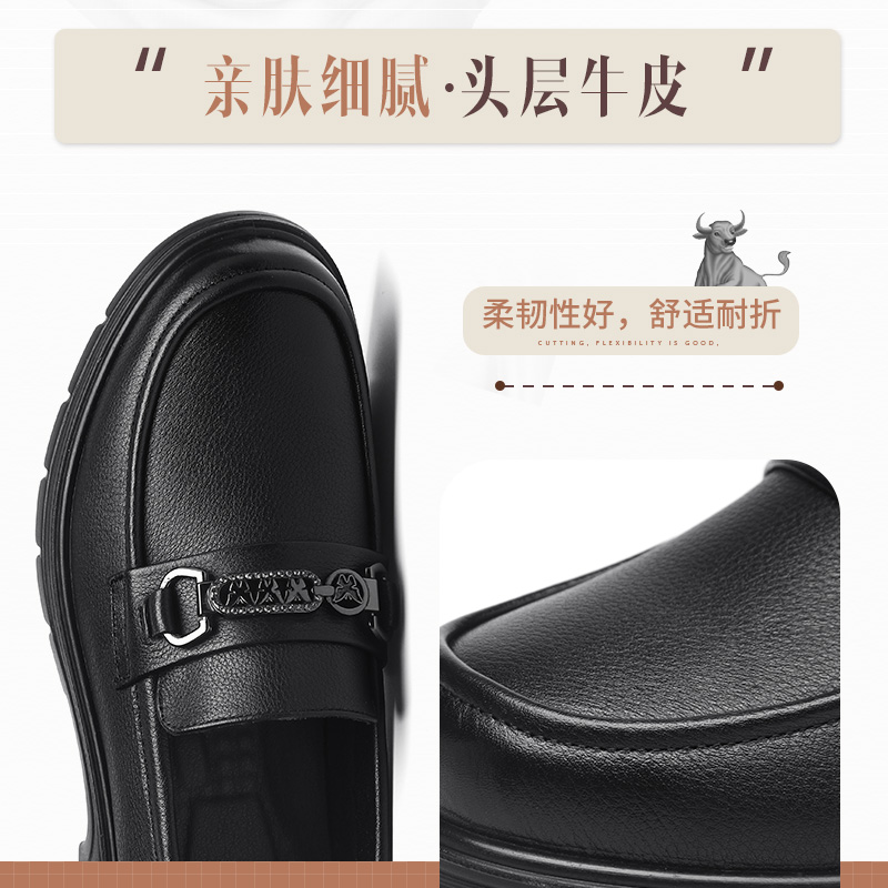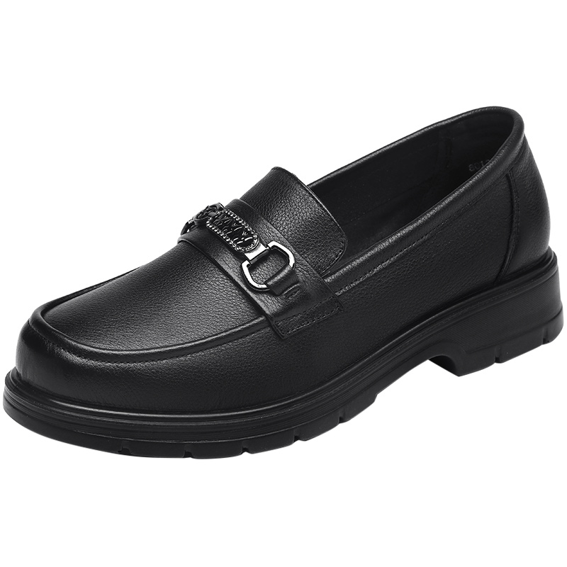 圆头英伦风女鞋 青年大码 清仓 女软底舒适一脚蹬单鞋 旺奈真皮乐福鞋