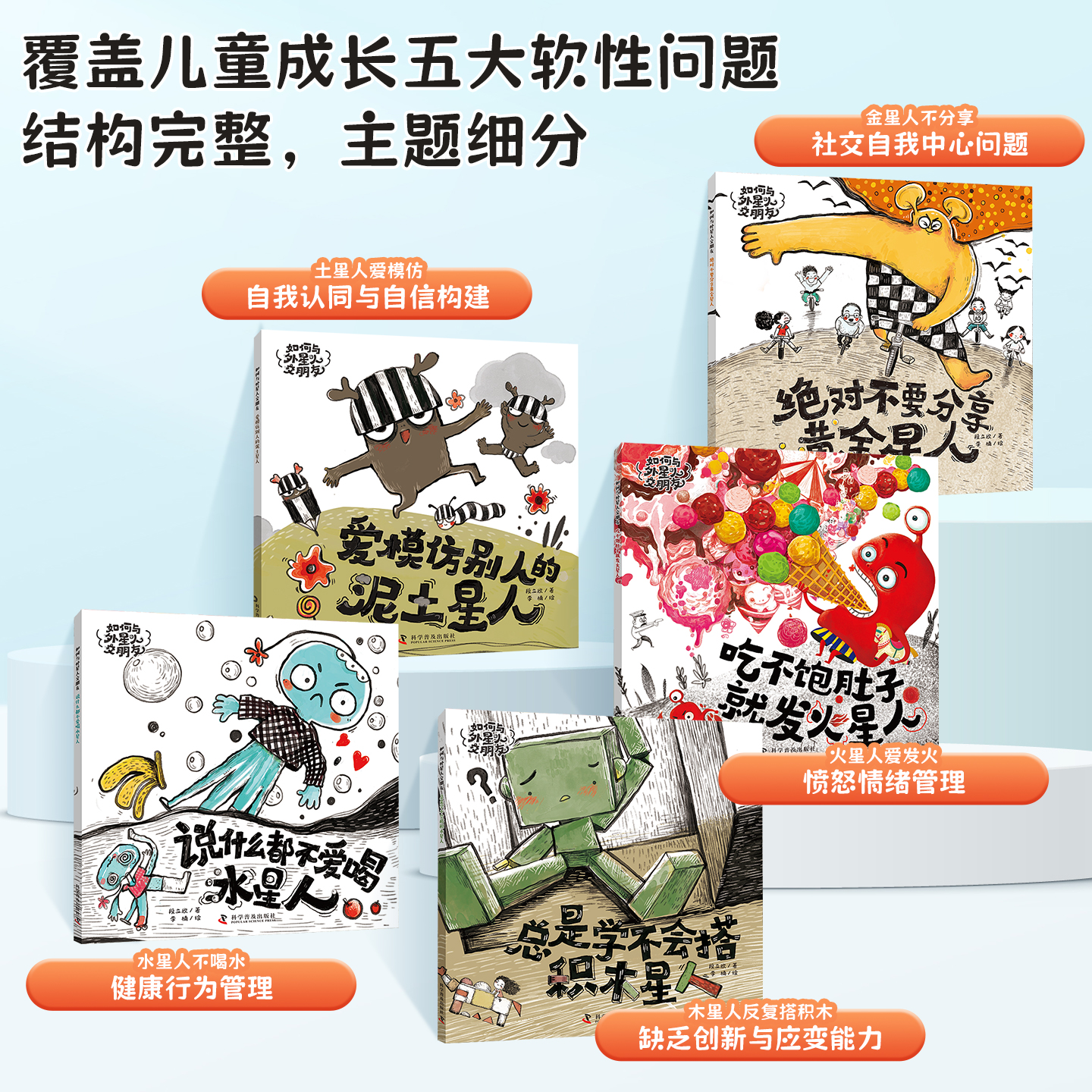 情绪管理人际交往社交性格成长早教启蒙书幼儿园宝宝睡前故事书 8岁儿童性格习惯养成绘本低幼儿童 如何与外星人交朋友全5册
