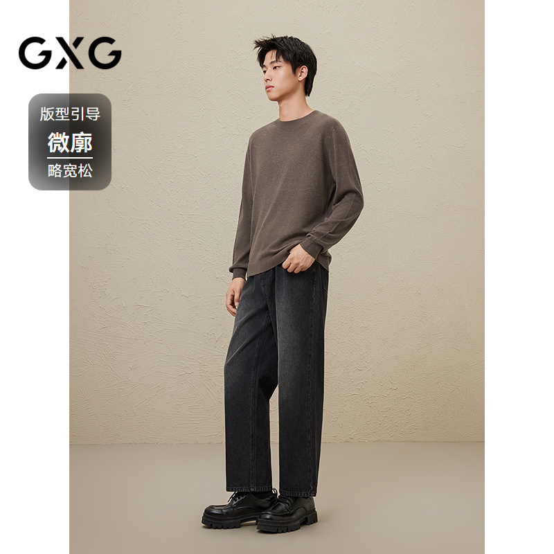 男款 保暖内搭针织衫 打底衫 GV真维斯黑色毛衣男秋冬加绒圆领男士