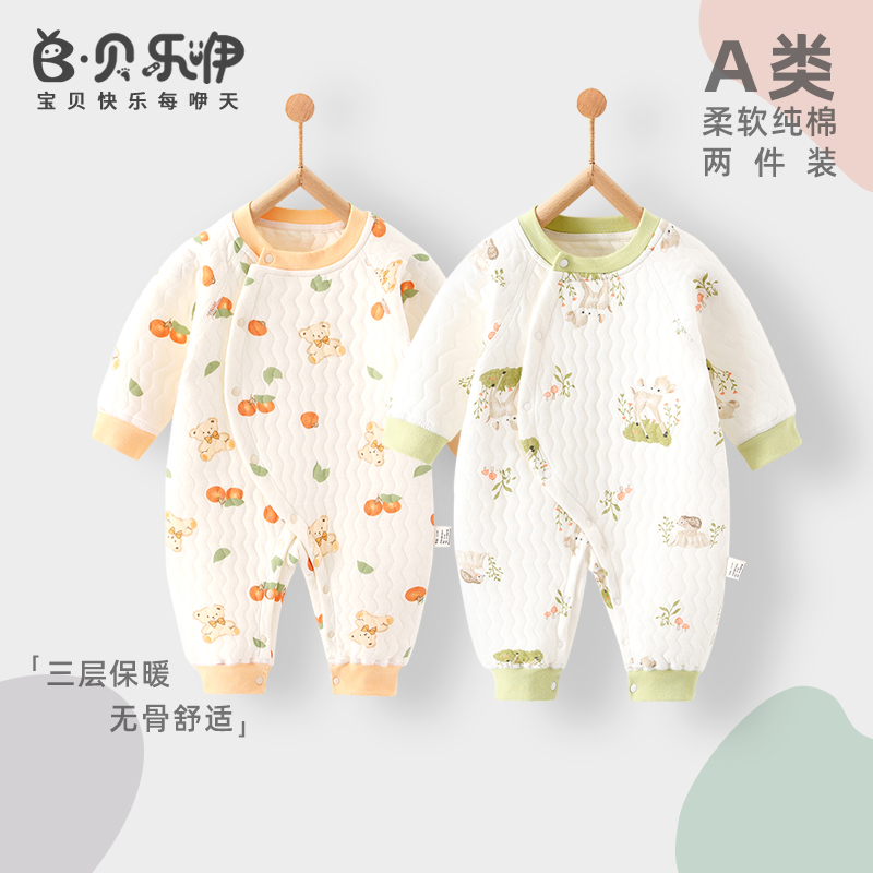 贝乐咿婴儿夹棉连体衣加厚秋冬宝宝新生儿秋季 衣服哈衣爬服保暖